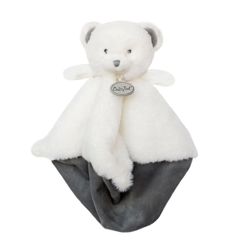 Ce joli doudou plat ours blanc de la marque BABY’NAT sera le compagnon idéal de bébé pour passer des nuits paisibles. Facile à attraper, ce doudou plat ours tout doux l’accompagnera dès sa naissance.