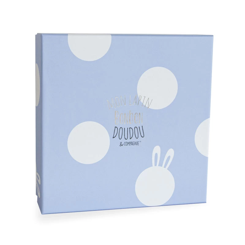 Caractéristiques :Lapin / Doudou plat / Bleu / – 20% / Avec une boîte