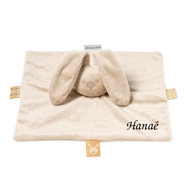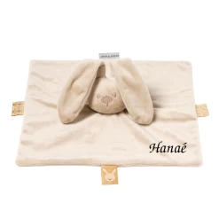 Doudou plat lapin sable de 20 cm à personnaliser avec une jolie broderie.