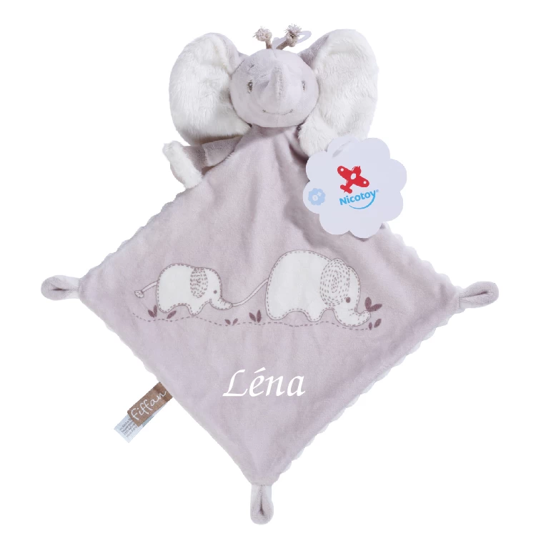 Magnifique doudou Nicotoy Fiffan l’éléphant de 25 cm à personnaliser.